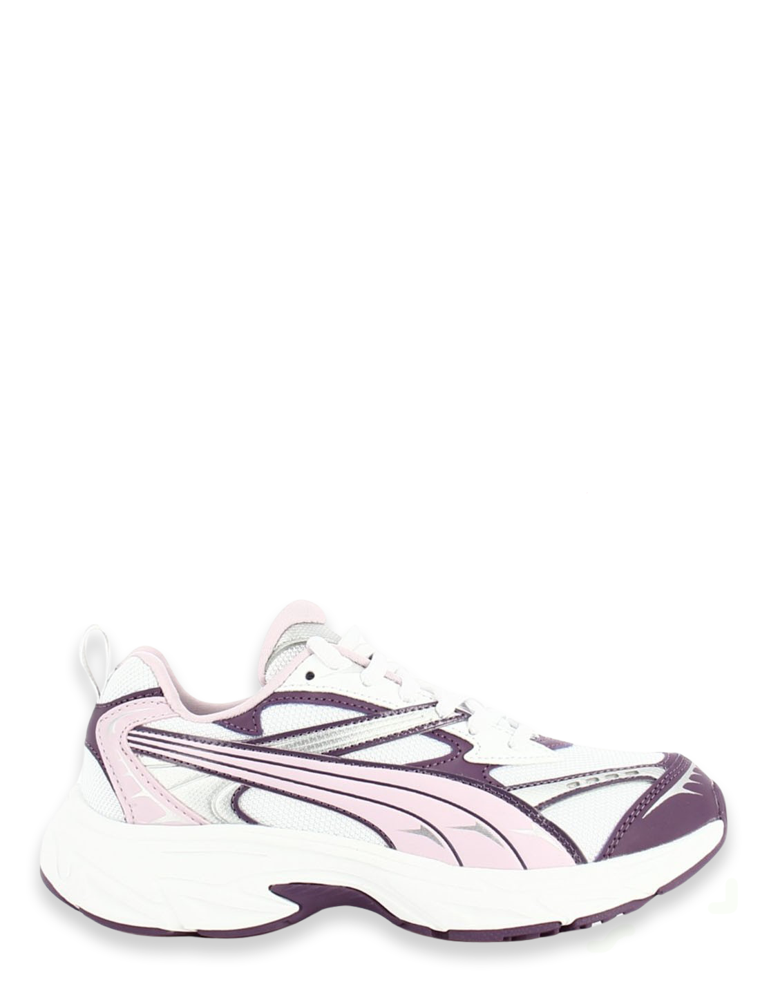 Ce modèle présente une tige en toile et une semelle retro running.