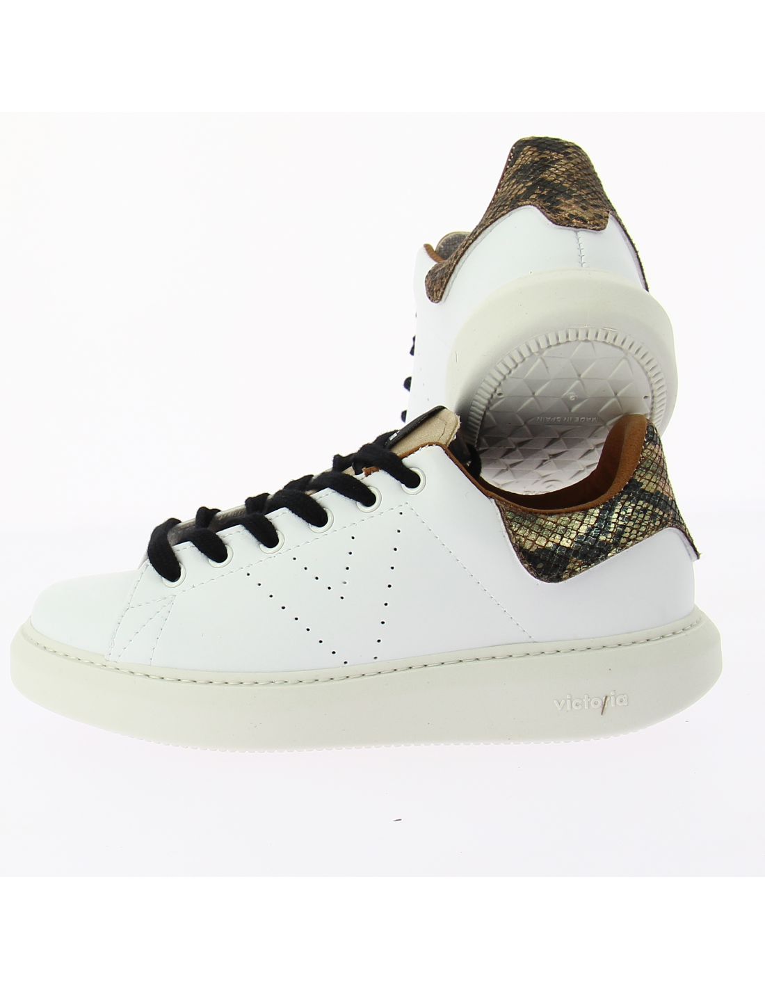 Découvrez l'élégance discrète des baskets Victoria, parfaites pour ajouter une touche de luxe à votre quotidien. Ces sneakers en cuir blanc sont rehaussées de détails serpent au talon, offrant une fusion parfaite entre confort classique et esthétique moderne.