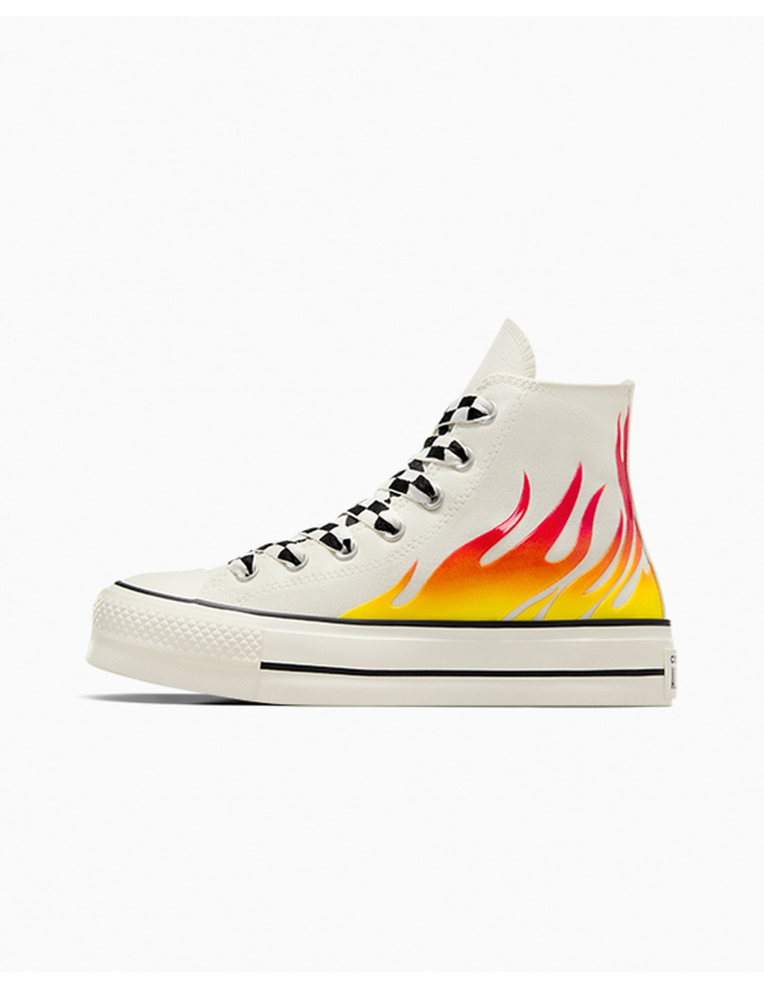 Avec sa tige en toile blanche et son motif flamme, donnez une touche de peps à votre tenue.