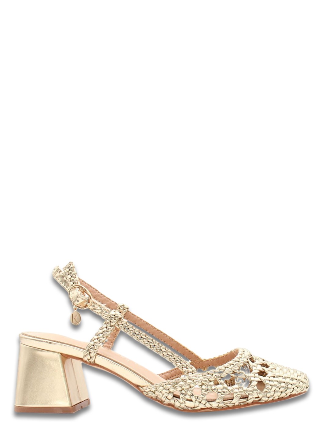 Cette paire de sandale à talons de couleur or/argent, accompagnée de strass sur les lanières, sublimera à la perfection votre look pour vos sorties estivales.